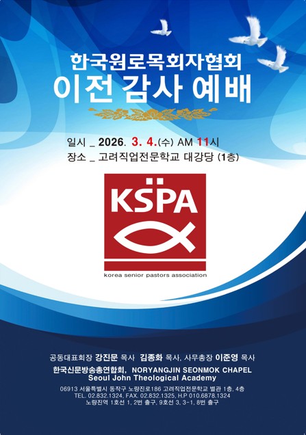 한국 교회 부흥의 주역들이 다시 한번 신발 끈을 조여 맸다. 지난 4일, 한국원로목회자협회(원목회)가 노량진 시대의 개막을 알리는 ‘이전 감사 예배’를 드렸다. 이번 예배는 각 분야에서 하나님께 쓰임 받는 사명자들이 하모니를 이루며, 원로 목회자들의 노년이 ‘저무는 해’가 아닌 ‘떠오르는 태양’임을 증명한 자리였다.