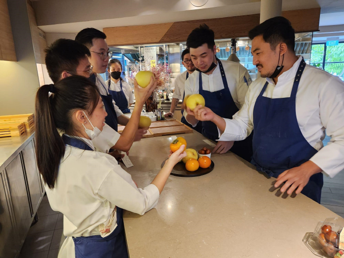 농촌진흥청(청장 조재호)은 지난 15일 미쉐린 별을 받은 싱가포르 현지 식당 2곳, ‘메타레스토랑(Meta Restaurant, 미쉐린 1스타)과 ‘클라우드스트리트(Cloudstreet, 미쉐린 2스타)에서 배 신품종 ‘그린시스’ 식미 평가를 진행했다고 밝혔다.